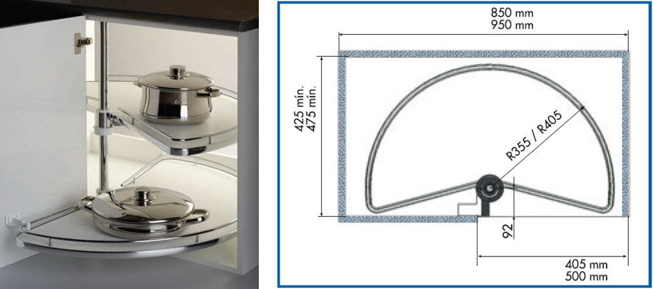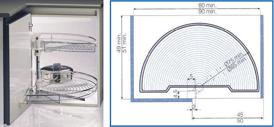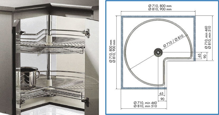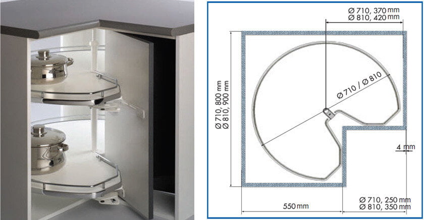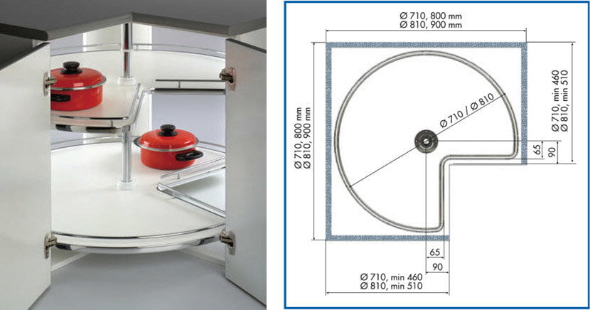 Draai carrousels voor iedere keuken, voor scharnierende of meedraaiende deuren.